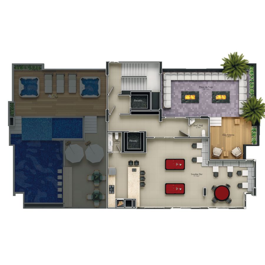 • Sala de jogos • Salão de festas