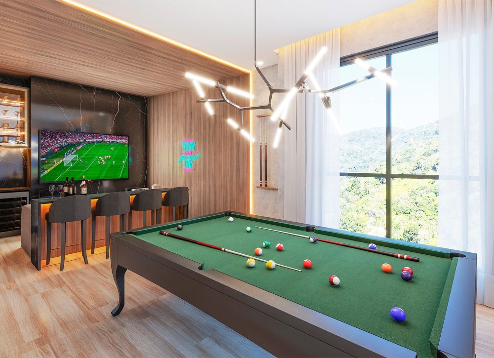 • Rooftop • Sala de games • Sala de jogos • Salão de festas.