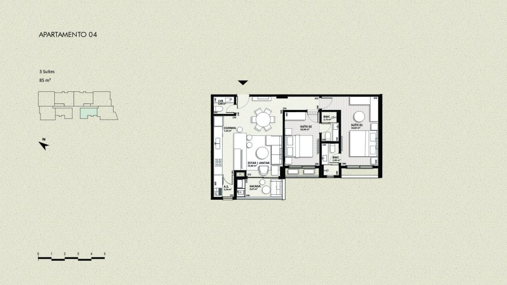 Com generosos 132m² de área privativa, este imóvel é um convite ao bem-estar. Desfrute de ambientes amplos e bem iluminados, perfeitos para momentos inesquecíveis em família e entre amigos. São 3 dormitórios, sendo 2 suítes, que garantem privacidade e conforto para todos os moradores, além de 5 banheiros cuidadosamente projetados.