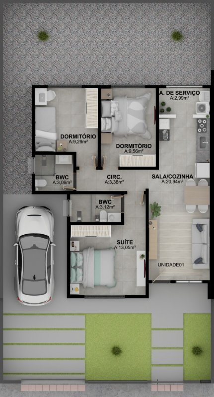 - Área Construída: 94 m²