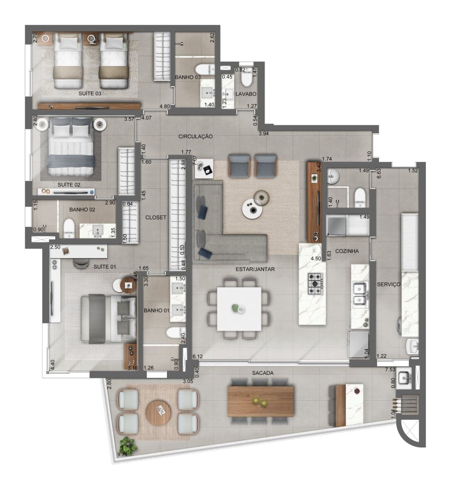 | Apartamento | R$ 3.022.608,43 | 165,01 m² | 232,78 m² | 3 | 3 | 4 | 1 |