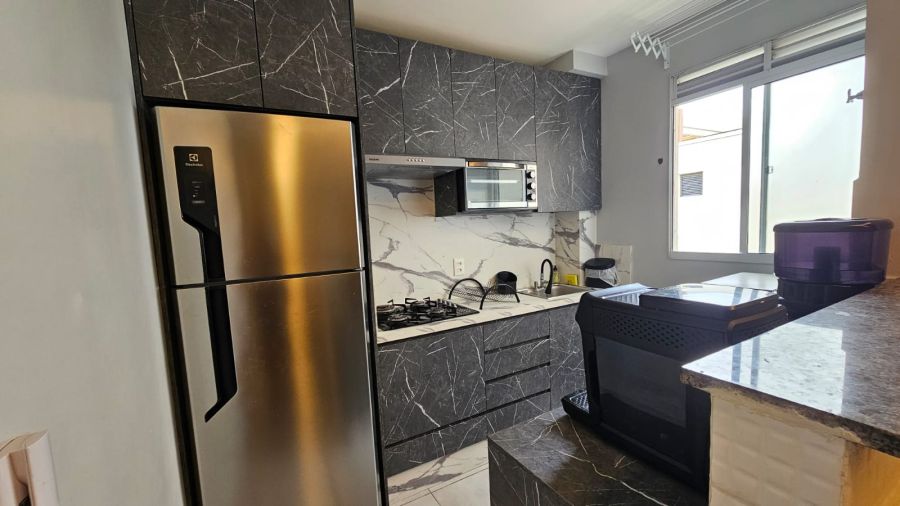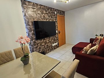 No Condomínio Flores do Mar, a vida ganha um novo ritmo. Com 40m² privativos inteligentemente distribuídos em 52m² totais, este apartamento mobiliado convida a momentos de relaxamento e convívio. Dois dormitórios aconchegantes, um banheiro funcional e uma vaga de garagem garantem a praticidade que você busca.