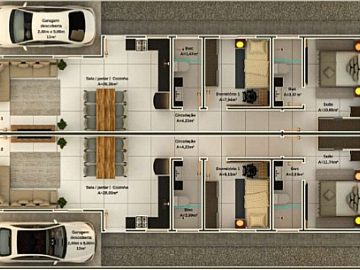 Com uma área privativa de 69,52 m², o imóvel possui uma planta inteligente e funcional. A unidade dispõe de dois dormitórios, sendo um deles uma suíte, garantindo privacidade e conforto. Ao todo, a casa conta com dois banheiros bem distribuídos, atendendo plenamente à demanda residencial. A área de serviço é separada, otimizando o uso dos espaços internos.